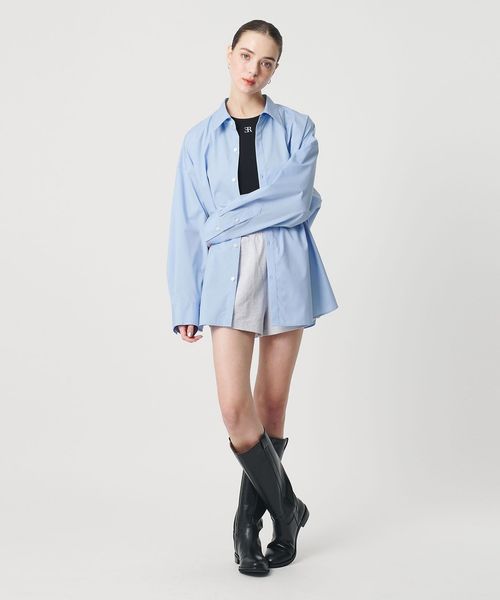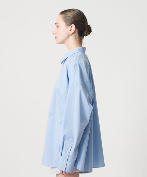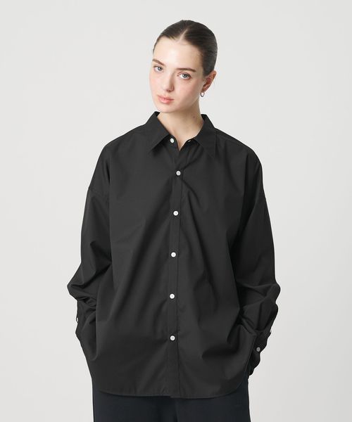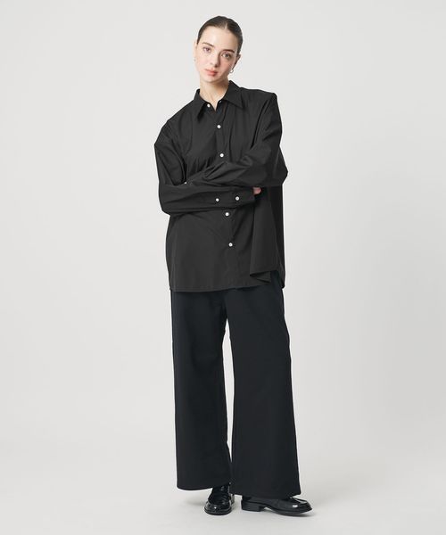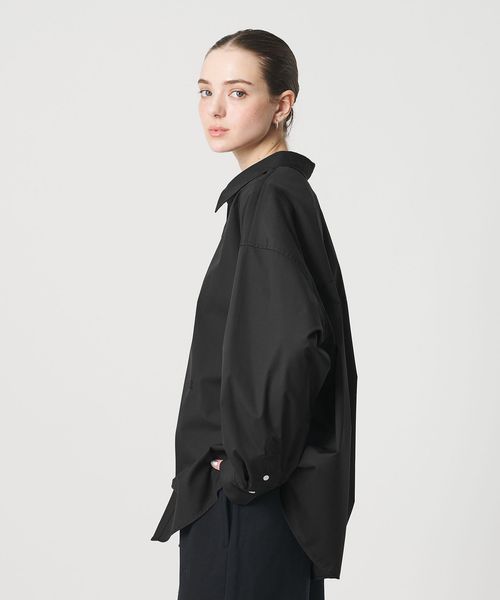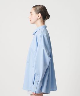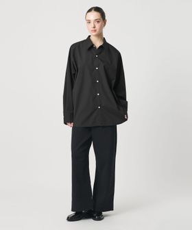 オーセンティックなムードを残しながら、首の開きなど襟元のディテールにこだわったオーバーシルエットのシャツ。