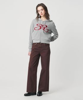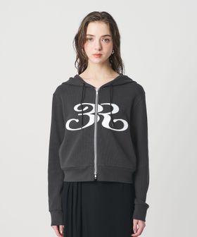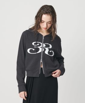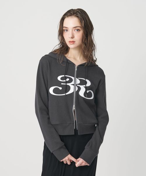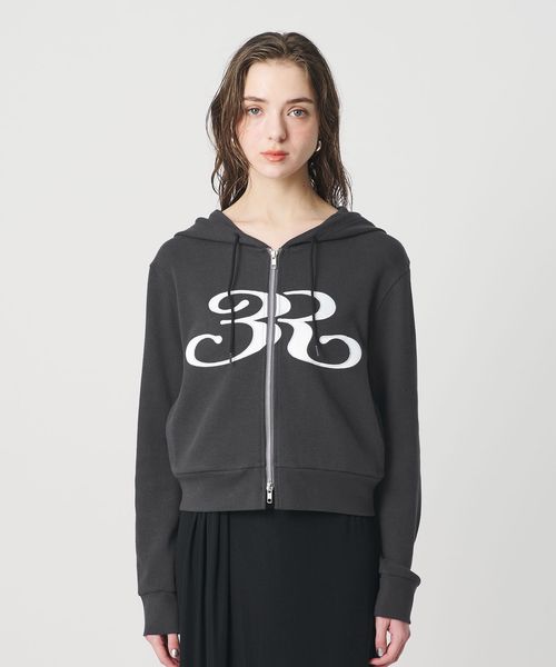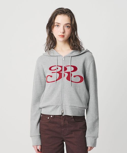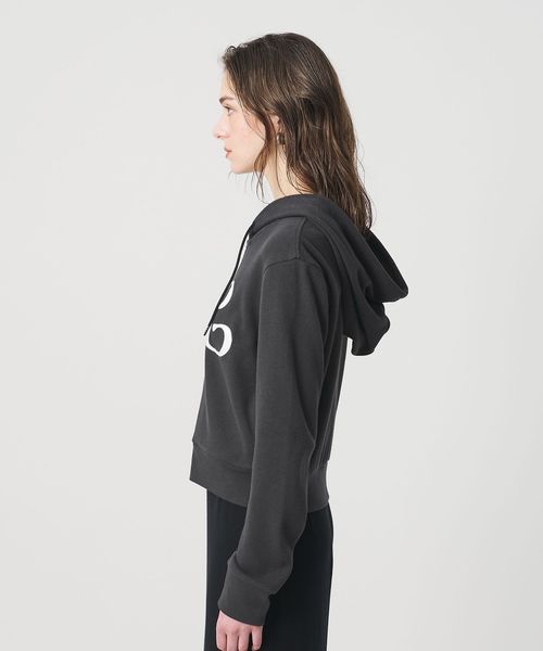 フロントに施したブランドロゴのワッペン刺繍が印象的なパーカー。