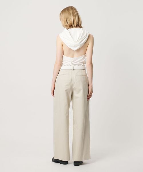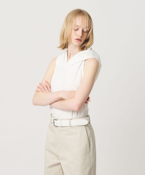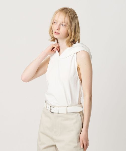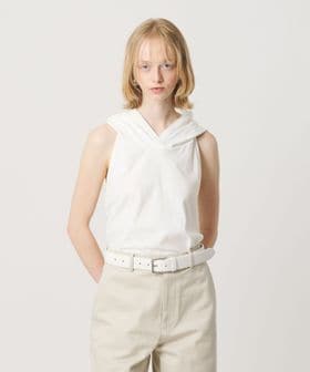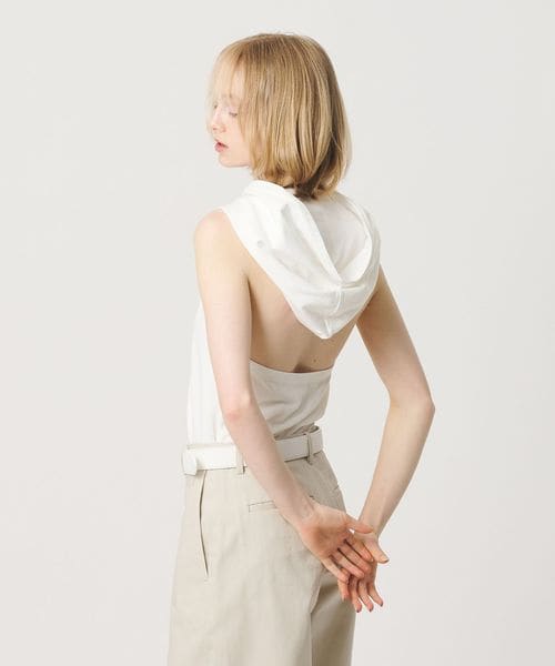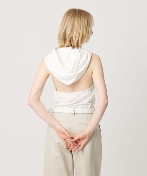 フードデザインが印象的なホルターネック型トップス。