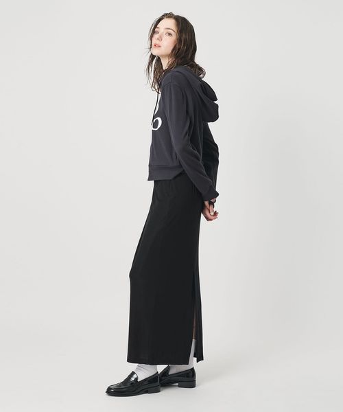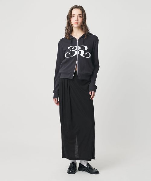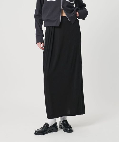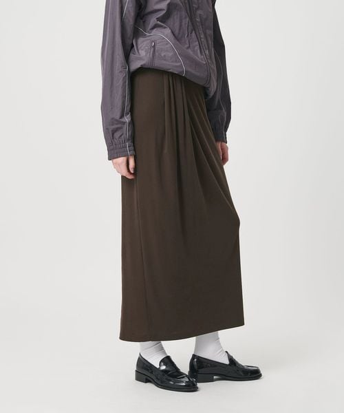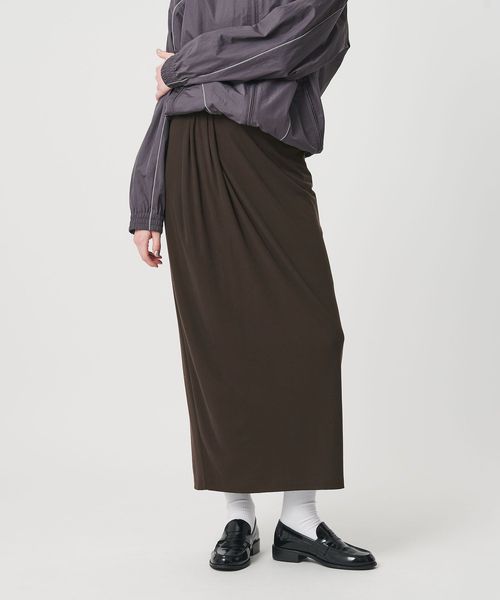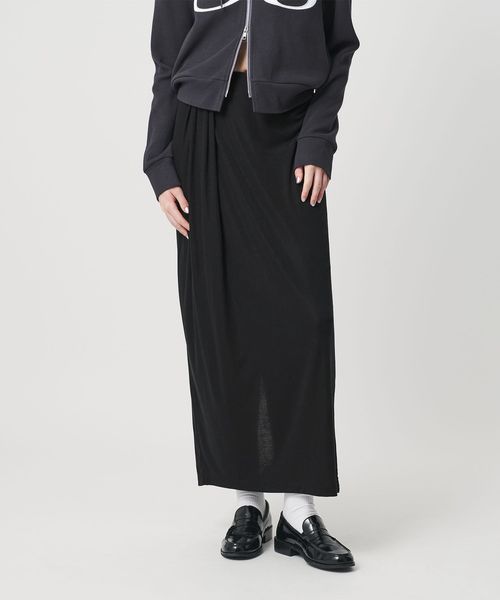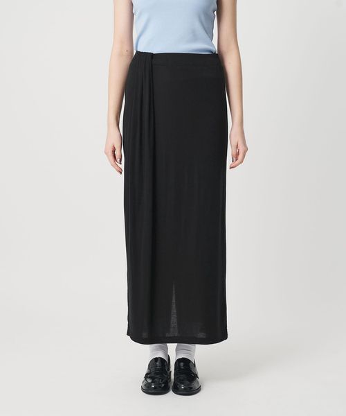 ウエストからワンポイントドレープをデザインした動きのあるロングスカート。