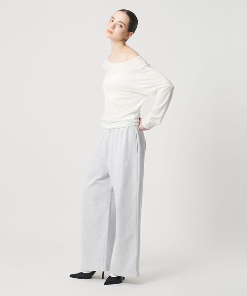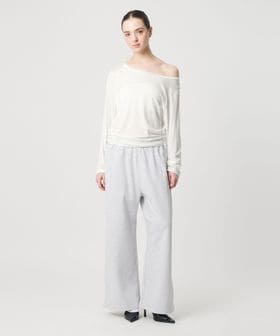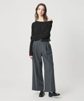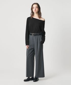 両側の肩を出すのはもちろん、片方をゆるっと落としたり、肩は落とさずにボートネックとしての着用も可能です。