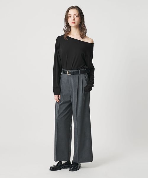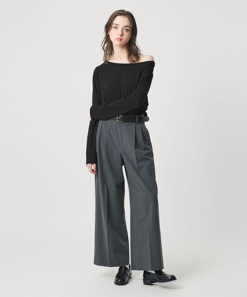 大きく開いたデコルテラインが特徴的なオフショルダーカットソー。