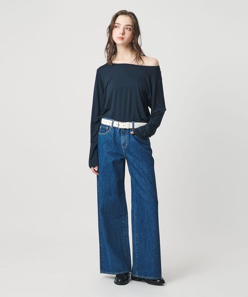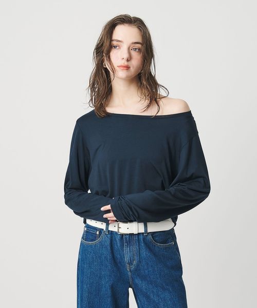 <ER>ジャージー オフショルダー ロングスリーブ Tシャツ