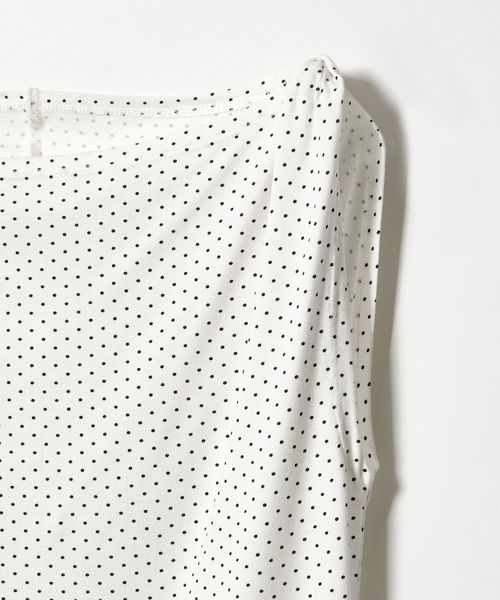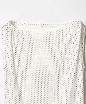 首元をすっきりと魅せるボートネックのデザインに、襟ぐりからのドレープで顔周りを華やかに演出します。