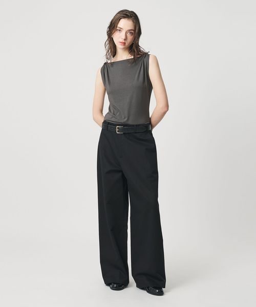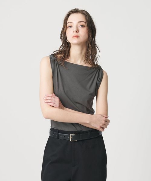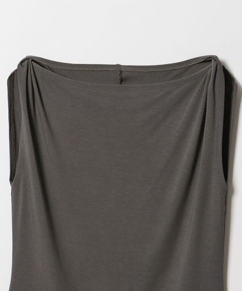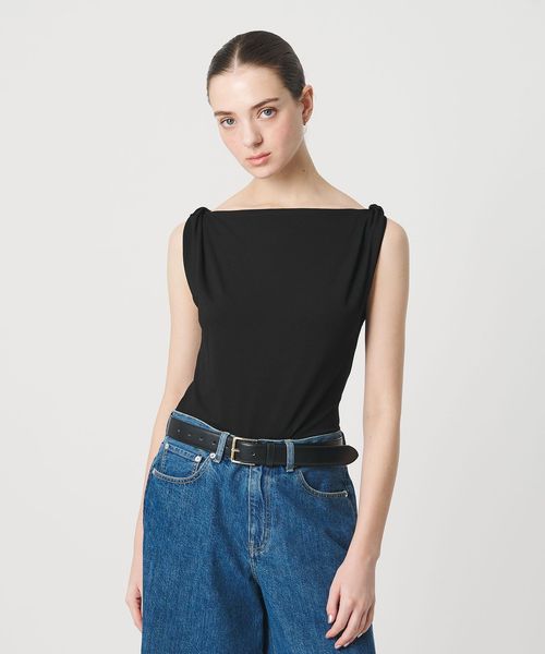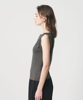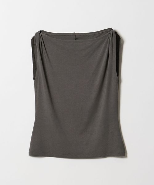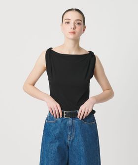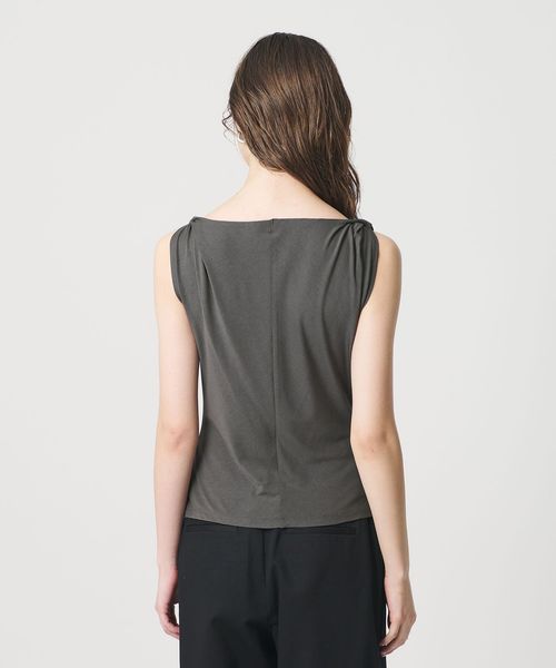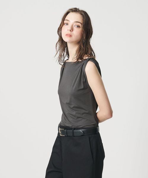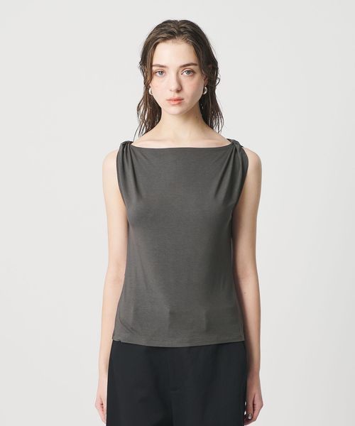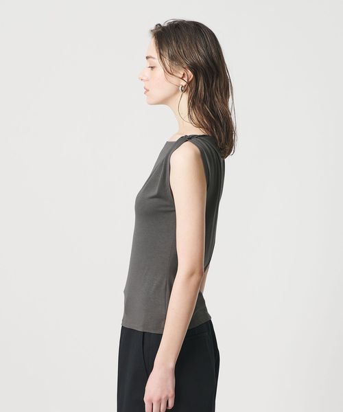 肩部分に施したツイストディテールがアクセントを効かせるノースリーブトップス。