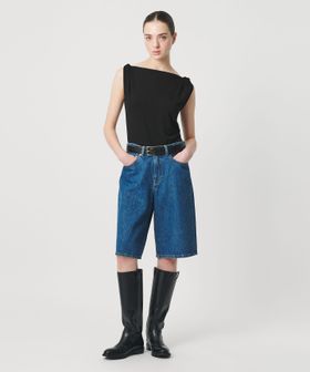 適度にコンパクトな着丈で、デニムショーツやワイドパンツなどボトムを選ばずにマッチするのも魅力。