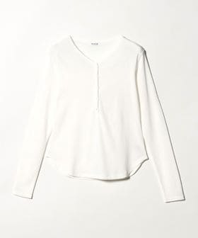 ミニマルなヘンリーネックが、落ち着いた印象を添えるロングスリーブカットソー。