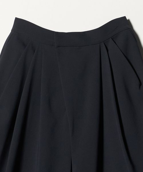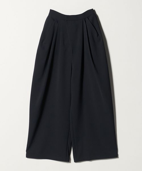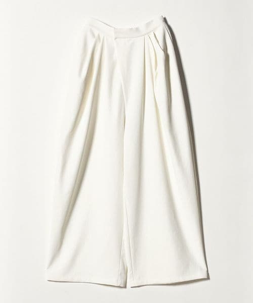大胆なタックが生む立体的なコクーンシルエットが、装いに穏やかな華やかさを添えるラップパンツ。