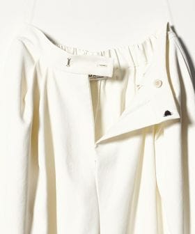 アシンメトリーのタックが控えめに個性を加えつつ、後ろウエストのゴムで快適な着用感に仕上げました。