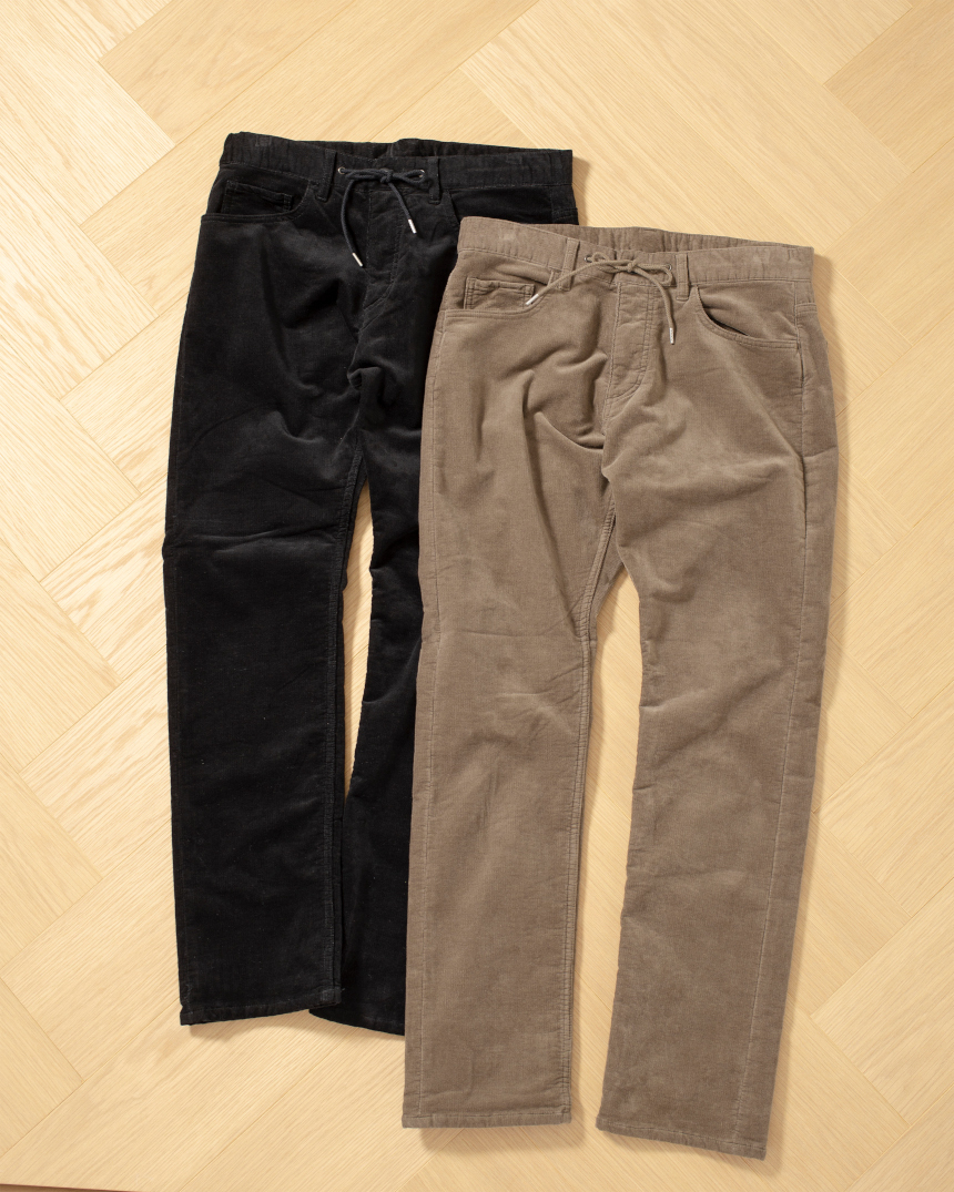 細畝のコーディロイに裏起毛を施したイージーパンツです。すっきりした細身のテーパードシルエットでコーディネートを選ばないカジュアルな5P仕様で