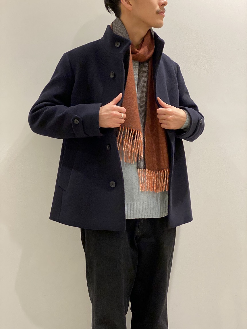 マフラーを首元から垂らすだけで上品な仕上がりにしてくれます。