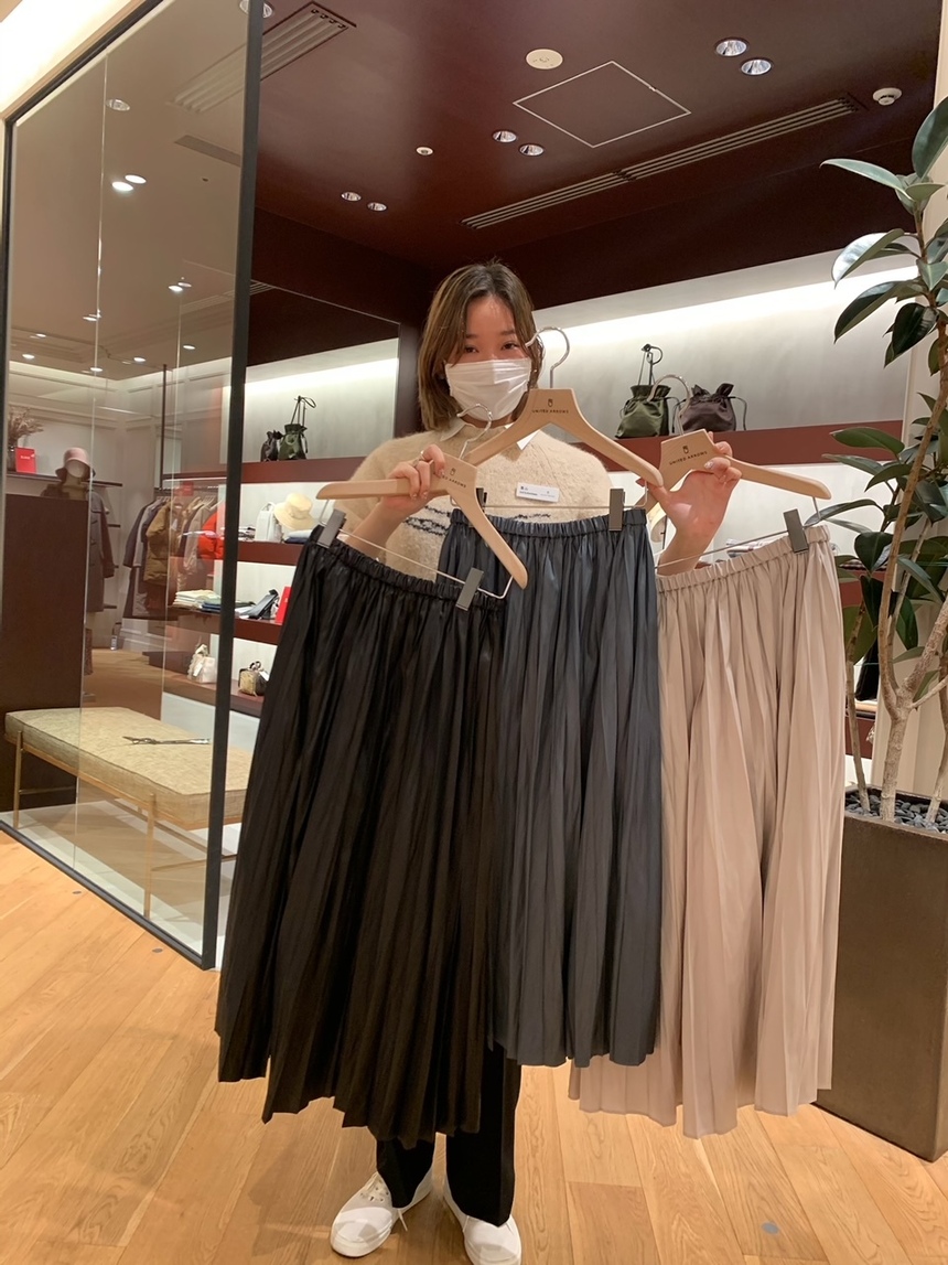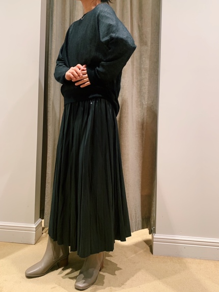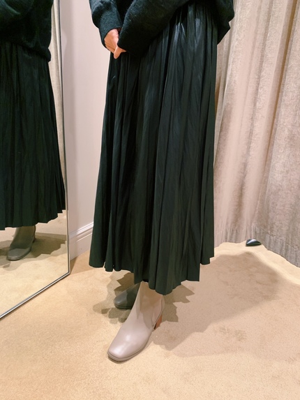 落ち感のある生地にランダムな折り目のプリーツがこなれ感を演出してくれるスカート。