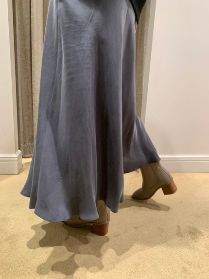 とろみのある質感と美しいマーメイドシルエットが女性らしさ溢れる一着。