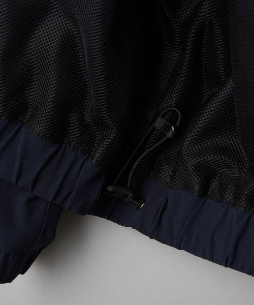 リサイクルナイロンを使用した縦横に伸びのあるリップストップ生地のスポーツジャケットです。