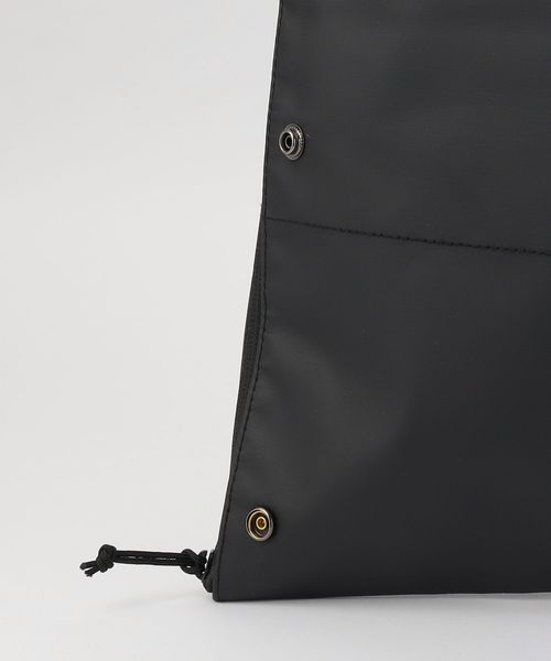 2層のターポリン生地を使用し、内側にはスナップボタンと6つのポケット付き。