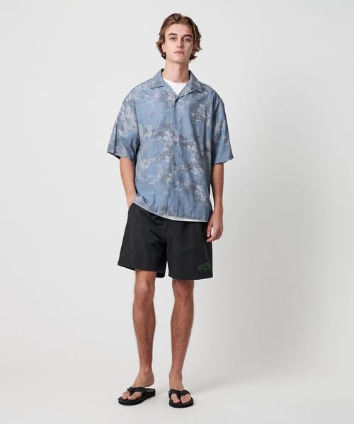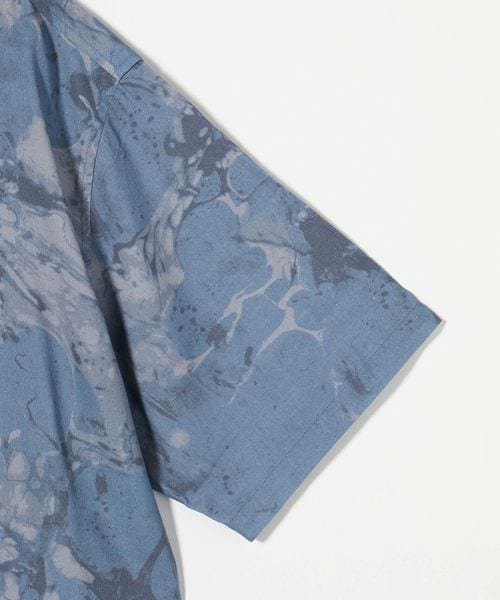 ムラ染めのような総柄プリントで、程よい落ち感のあるリラックスしたムードのショートスリーブシャツ。