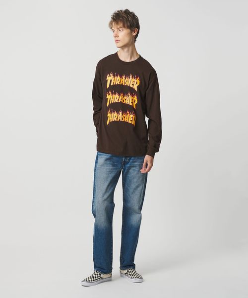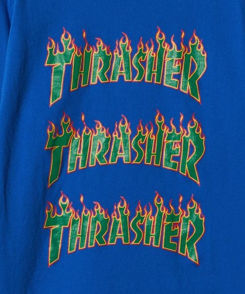<THRASHER>ファイヤーロゴを、フロントに大きくトリプルプリントしたインパクトなデザインの別注Tシャツ。