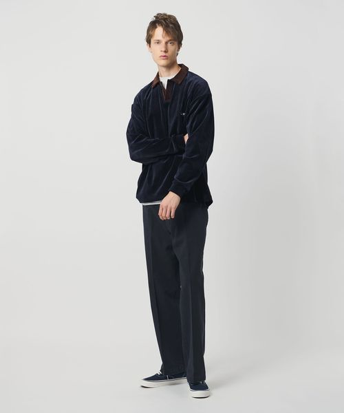ファッション感と、リラックス感を両立させたほど良くゆとりのあるシルエットで、左胸に配したショップロゴの刺繍もワンポイントになっています。