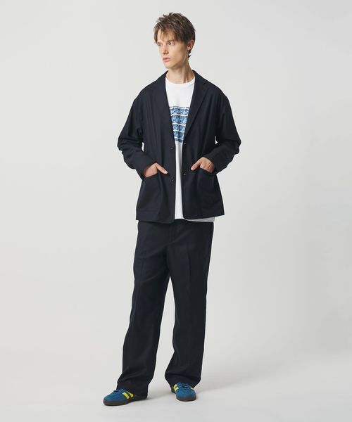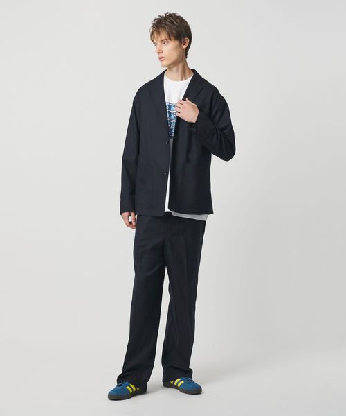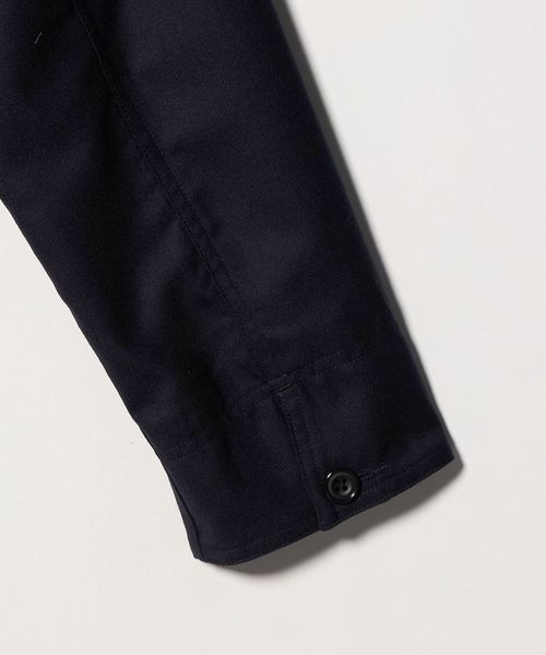 半裏仕様でダブルステッチや、袖口のディデールはカバーオールテイストに。