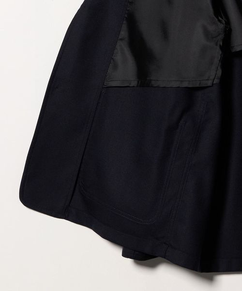リサイクルポリエステルを一部使用した、ウール・ポリエステル混のサキソニーカバーオールジャケット。
