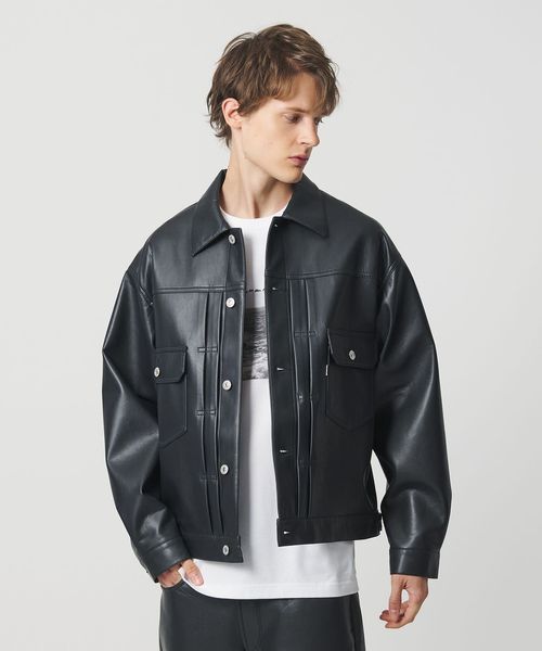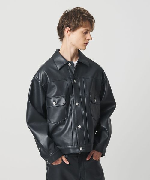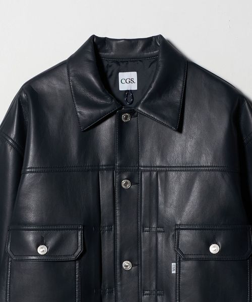 <CGS.>定番のデニムジャケットをレザー調の素材で作製。