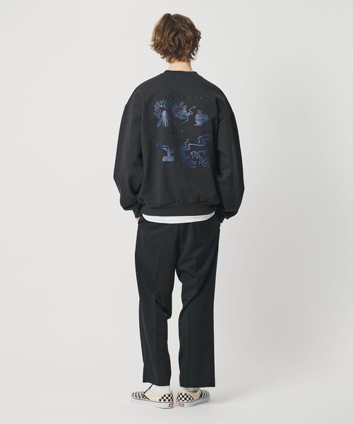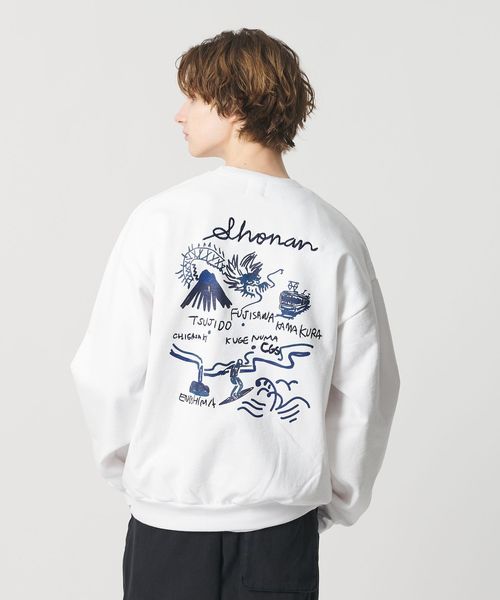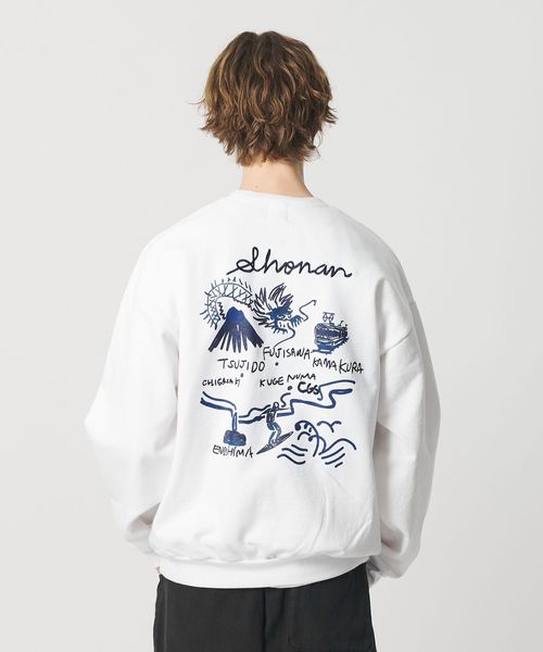バックプリントに<CGS.>コラボレーションとして湘南をテーマにしたスーベニアジャケット風グラフィックが入ったスウェットです。