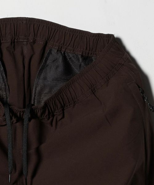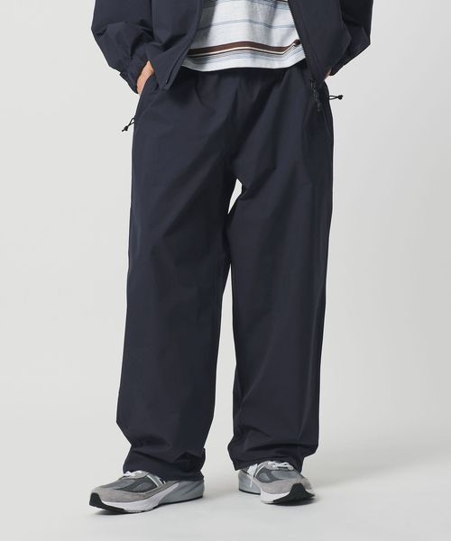 「PERTEX UNLIMITED」のリップストップ素材(一部にリサイクルポリエステルを使用)のワイドストレートトラックパンツ。