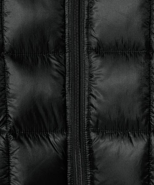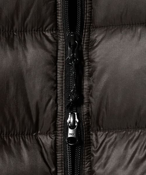 10デニールの極細番手を高密度に打ち込んだリサイクルナイロンリップストップ生地を使用したダウンベストです。