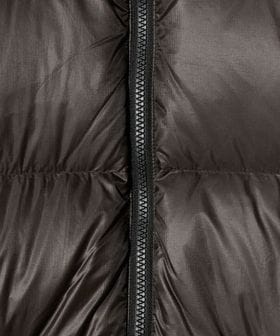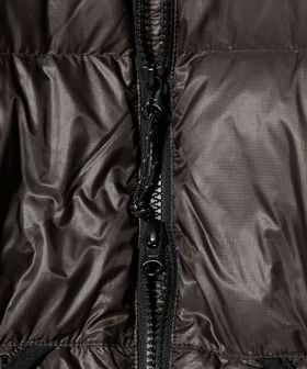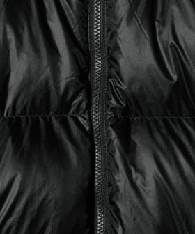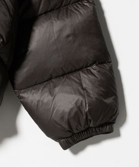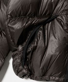 ナイロンならでは、しなやかで柔らかな風合いが特徴で、中綿にはアライド社のリサイクルダウンを使用。