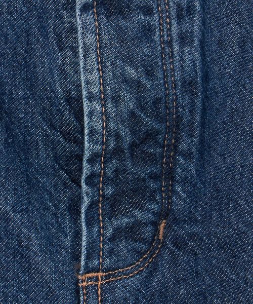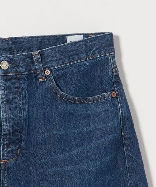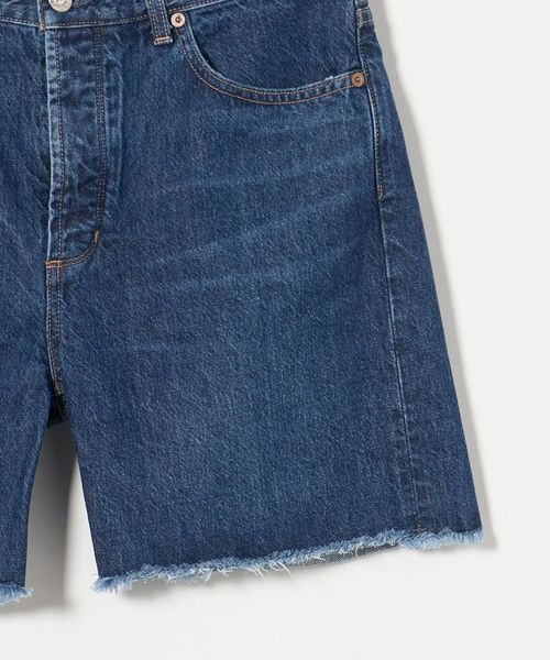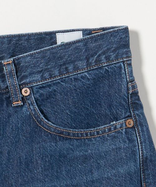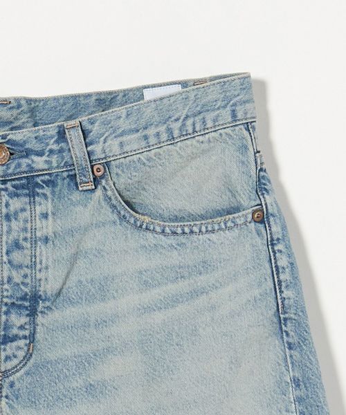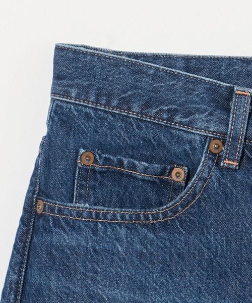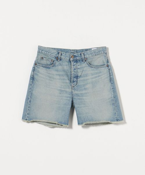 ヴィンテージデニムを参考にし、ユーズド加工を施し、ロングパンツをカットしたような仕様にしています。