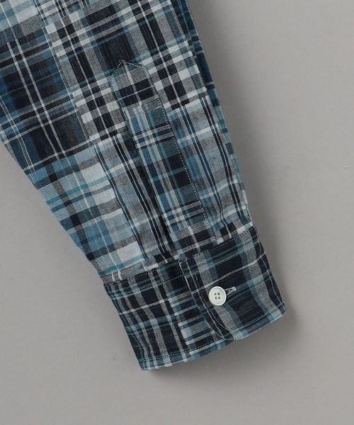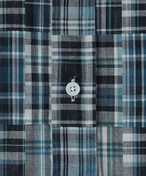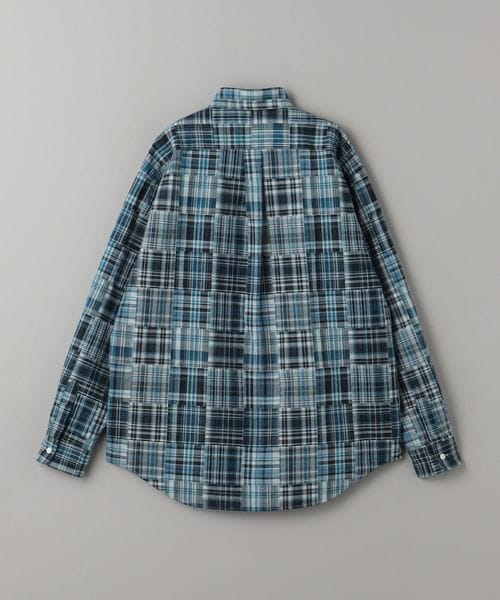 マドラスチェックのパッチワーク柄のボタンダウンシャツ。