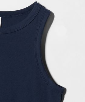 コンパクトな着丈で仕上げた、旬顔のタンクトップ。