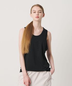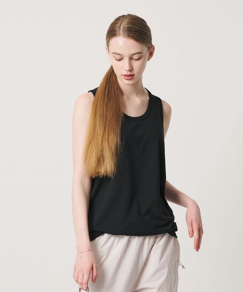 身幅にほどよいゆとりを持たせることで、タンクトップ特有のインナー感を抑え、1枚着としても着用可能なバランスに仕上げました。