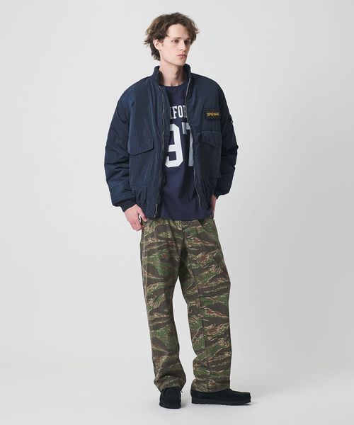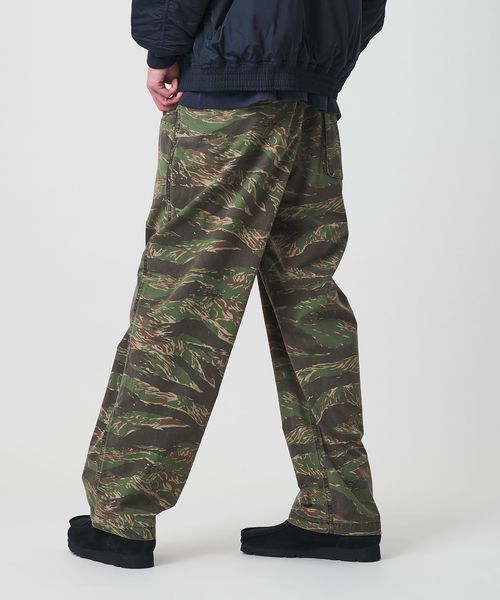 リラックス感漂う、ルーズシルエットカモ柄パンツ