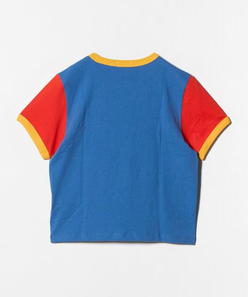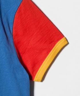 あざやかなブルーに赤スリーブ、イエローのトリムの遊び心あふれる配色に、フロントのホワイトブロックロゴがアクセントをプラス。