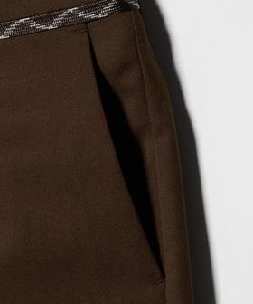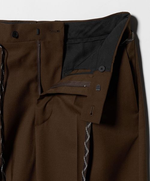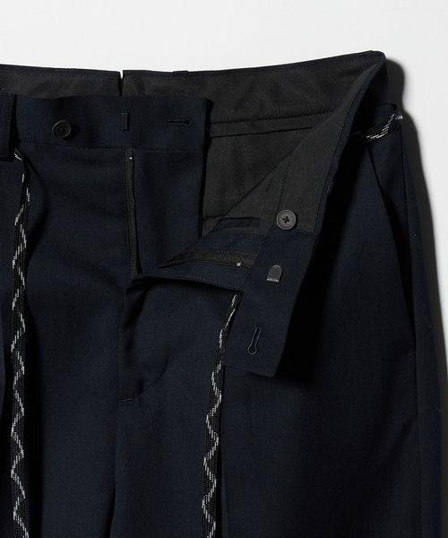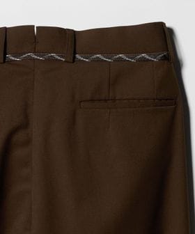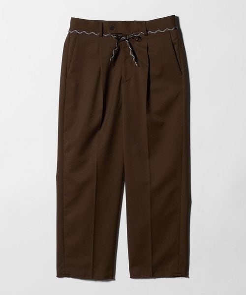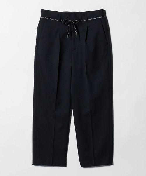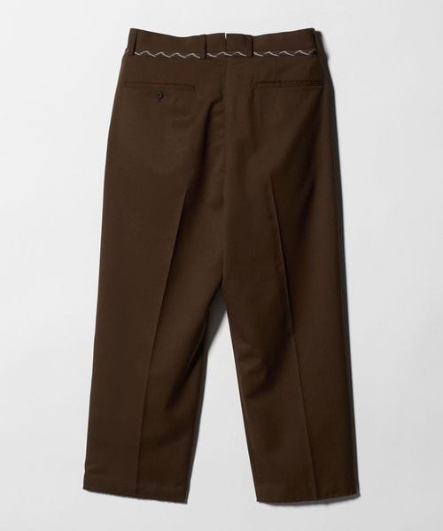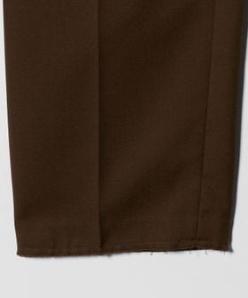 センタープレスを施した、トレンド感のあるワイドテーパードシルエットをベースに、裾はあえて大胆なカットオフ仕様を採用。