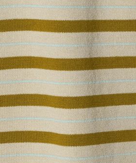 ボーイッシュなマルチボーダー柄が目を引く、コットンニットポロ。