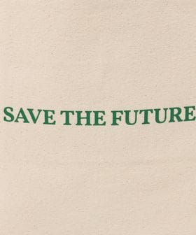 表面には<California General Store>のロゴを、裏面には“SAVE THE FUTURE”のレタリングをプリントしたキャンバストートバッグ。