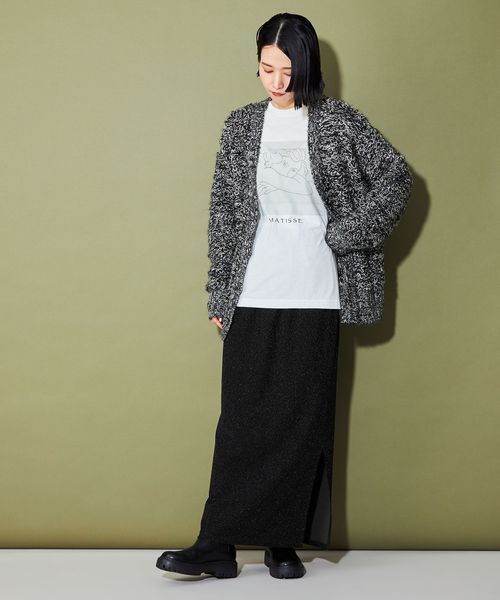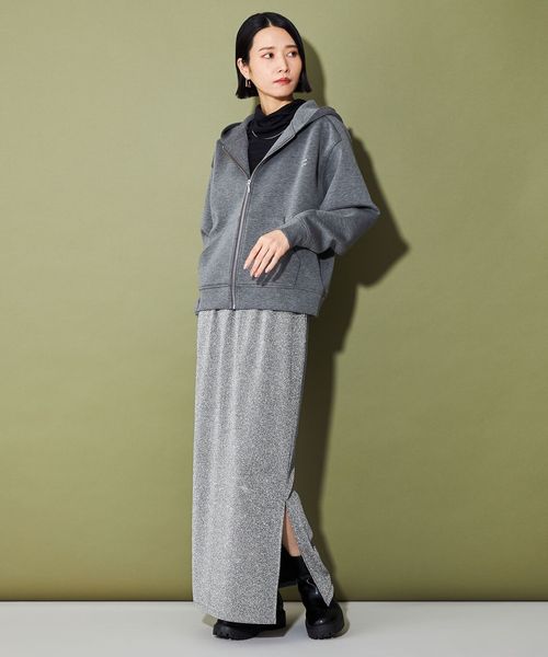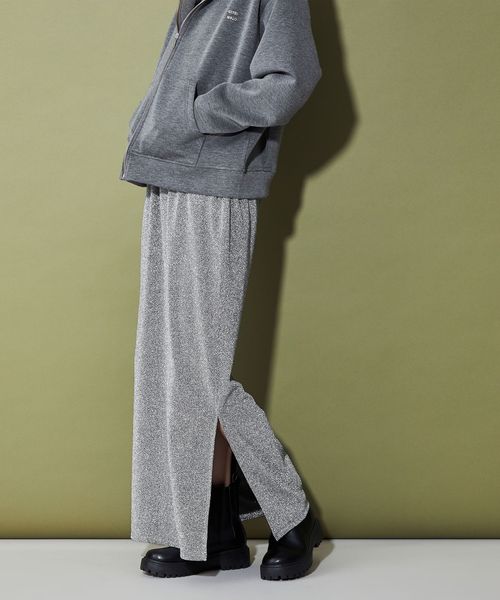 今季トレンドのきらきらしたラメ感のある素材がポイントのナローシルエットスカート。