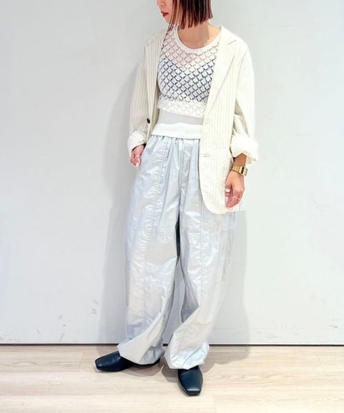 タンクやキャミソールの上にさらりと羽織ったり、ロゴTシャツをインナーに着てカジュアルに着こなすのもおすすめです。