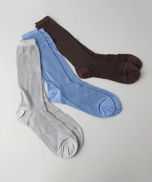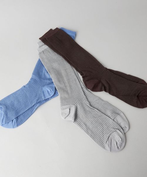 やわらかい糸で繊細に編み上げたガーゼのような仕上がりのリブソックス。