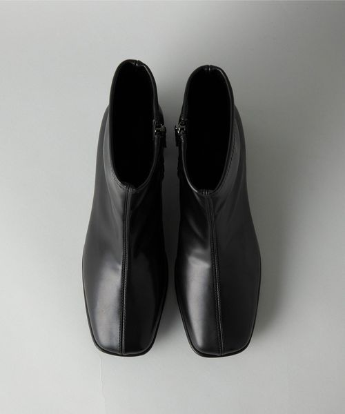 汎用性の高いスクエアトゥーのショートブーツ。