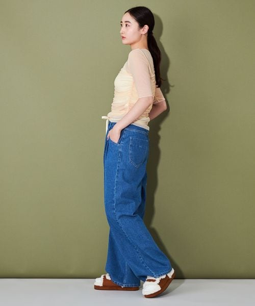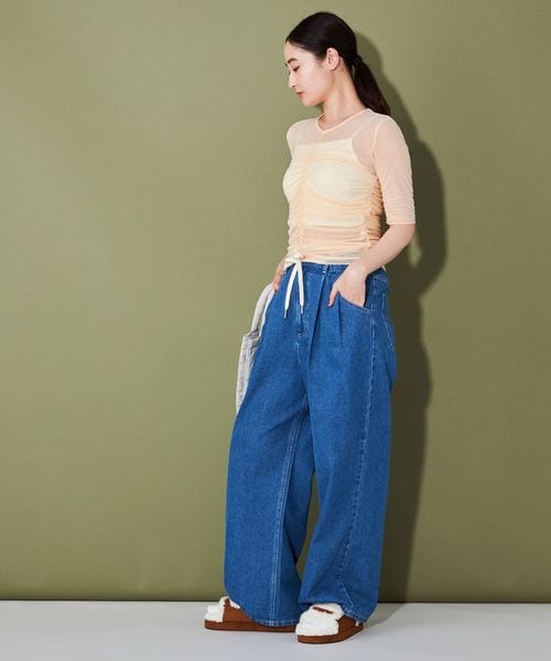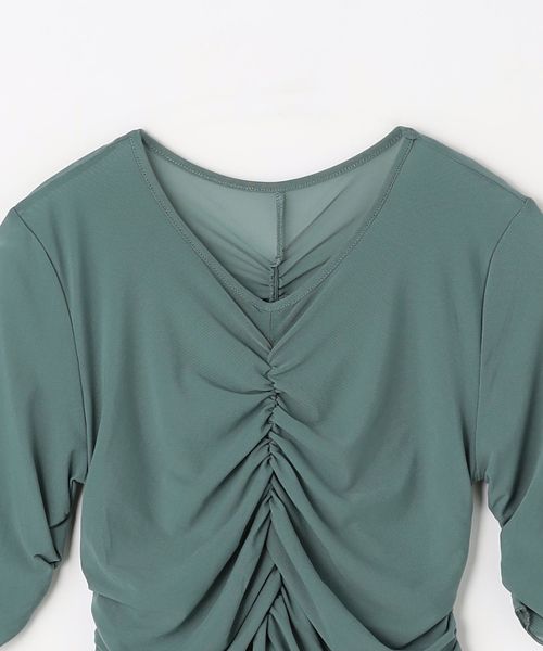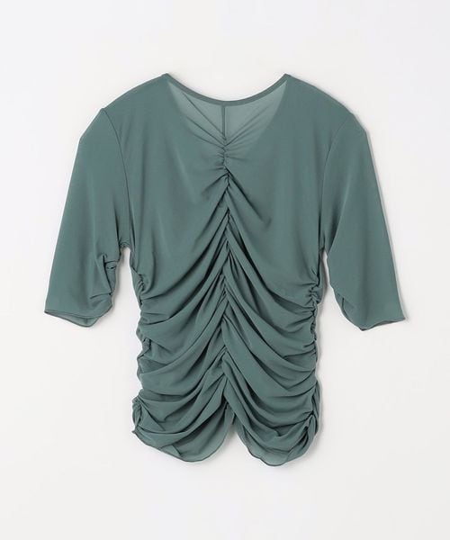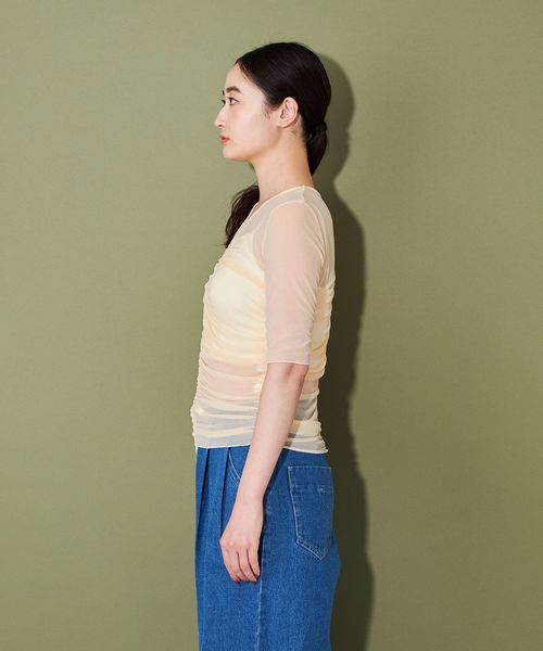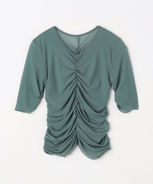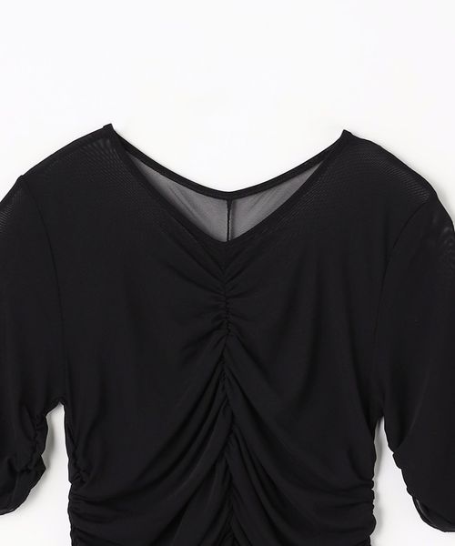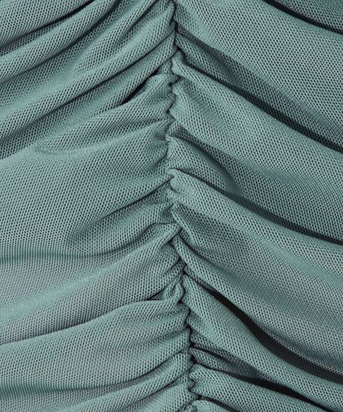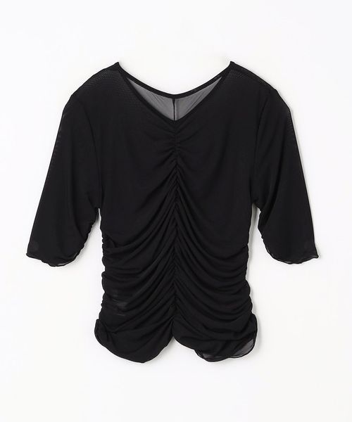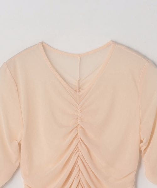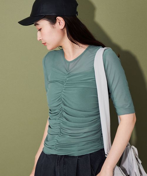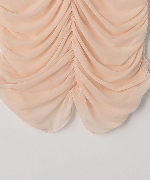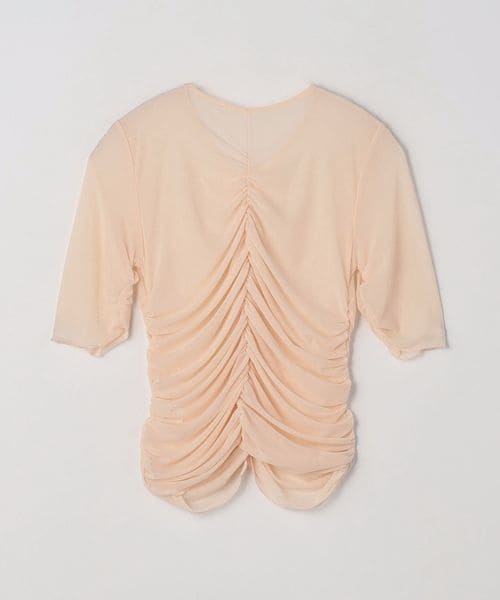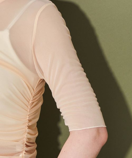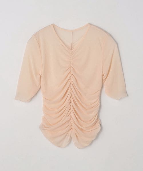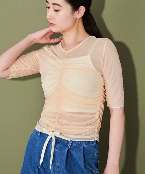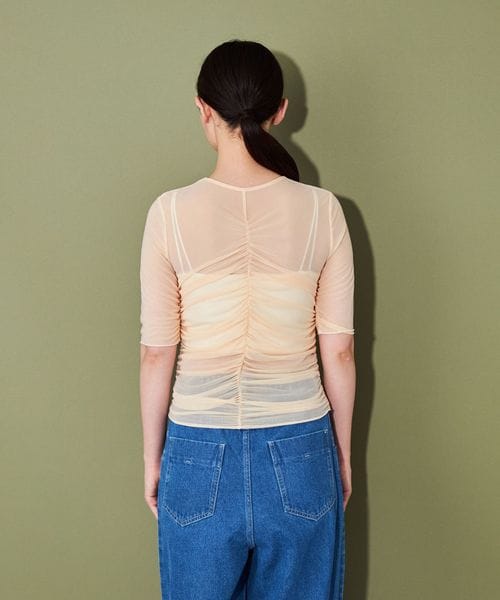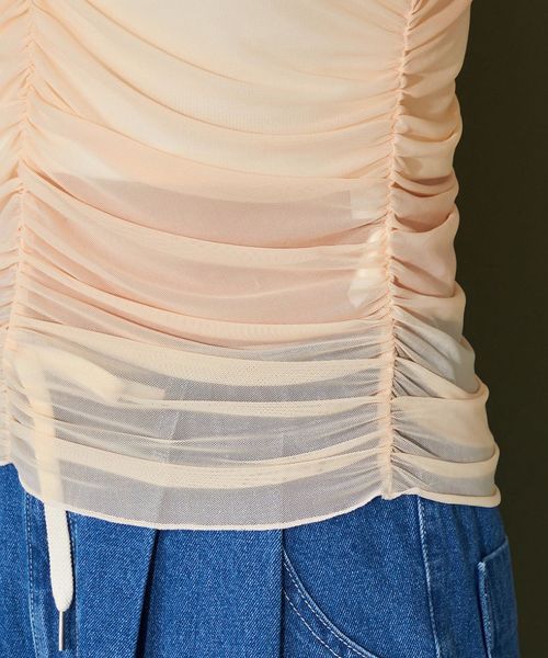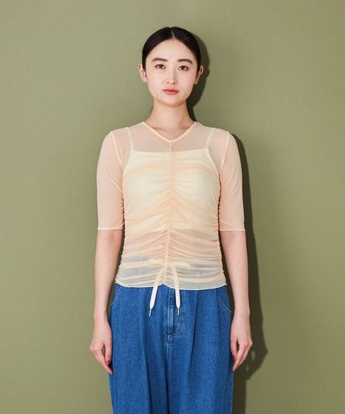 トレンドのシャーリングデザインを柔らかなチュールネット素材にのせてデイリーに着やすい1枚に仕上げました。