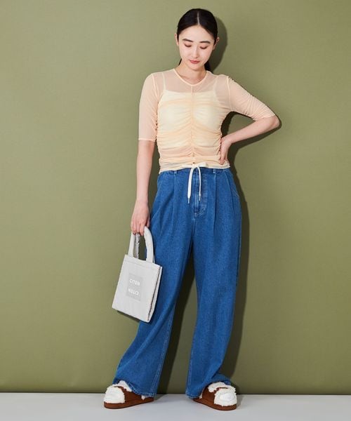 スタイリングのアクセントになるトップスにはシンプルなデニムやスラックス、スカートを合わせるだけで旬なスタイリングが完成。