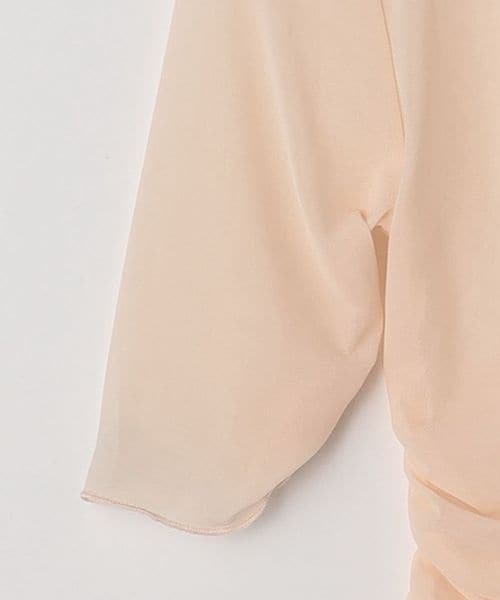 しっかりと二の腕をカバーする5分袖丈とシャーリング効果で肩周りもスッキリ。