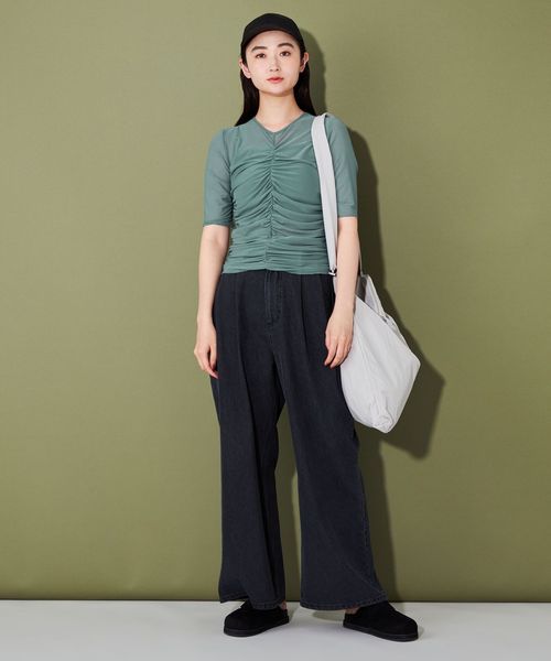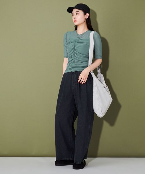 シャーリングディテールがトレンド感たっぷりなコンパクトTシャツ