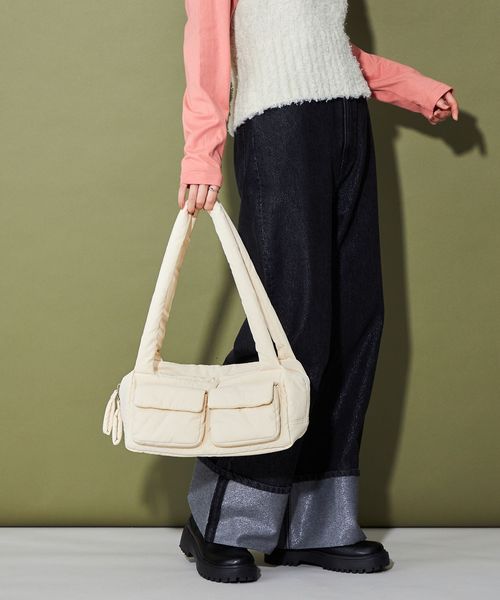 ぷっくりダブルポケットがアクセントのパファーバッグ