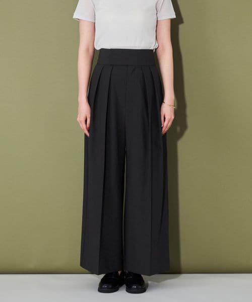 フロントに2タックをいれ、たっぷり贅沢に生地を使用したワイドパンツ。