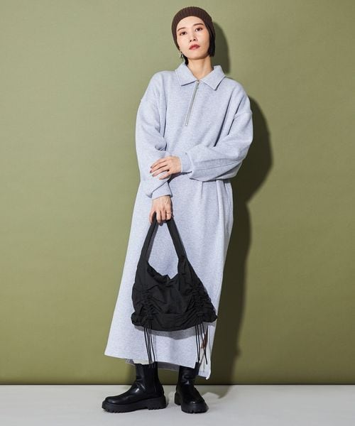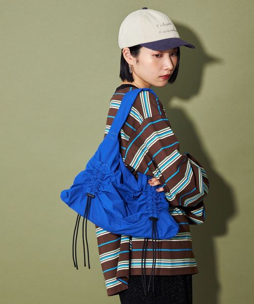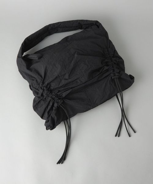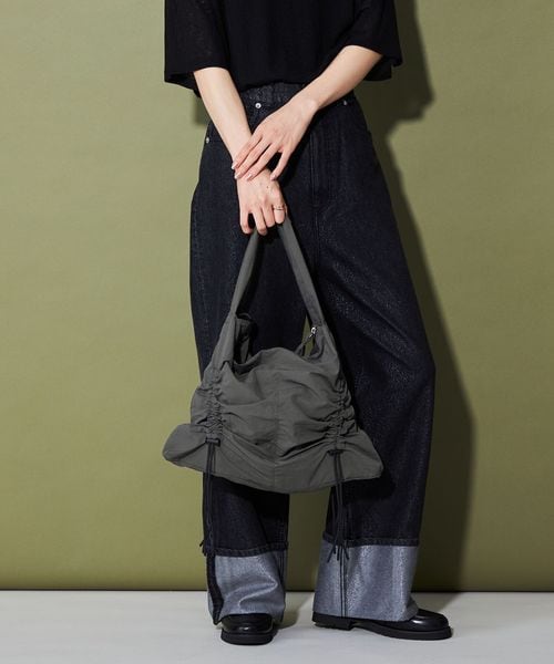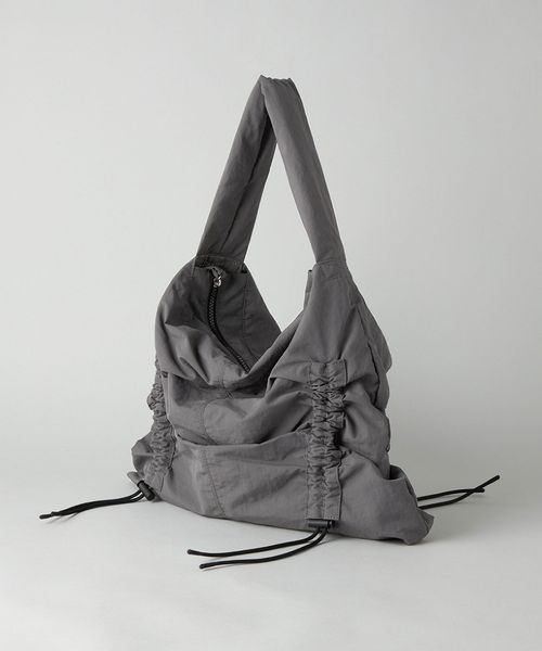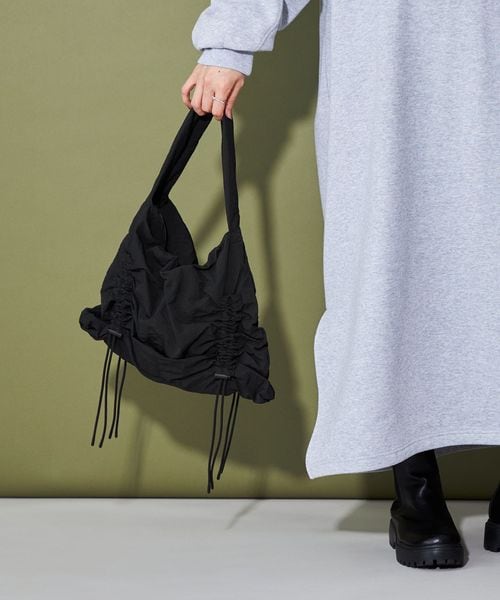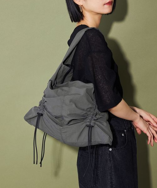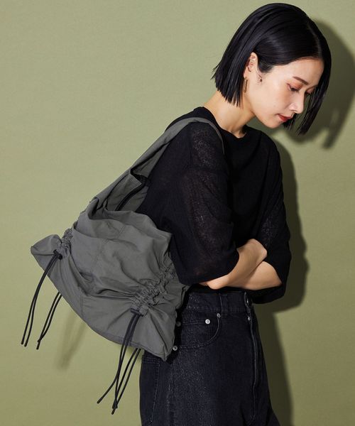 サイズ調整しやすいトレンド感あるシャーリングドロストバッグ