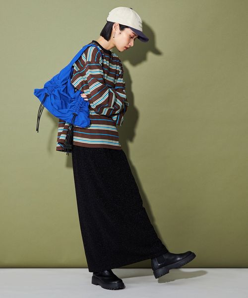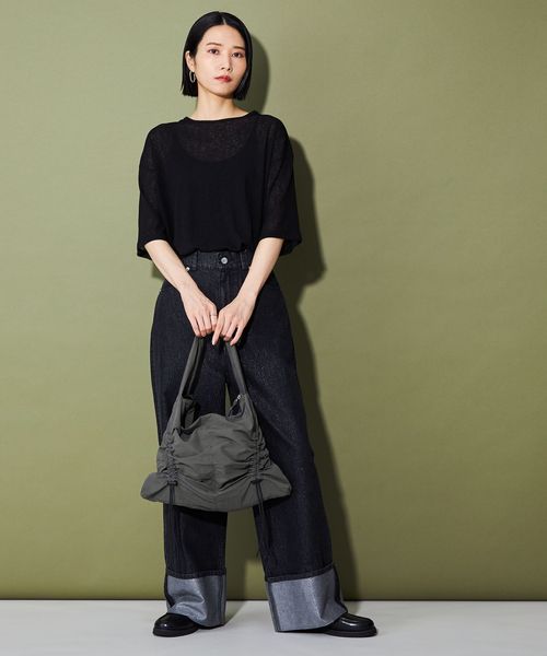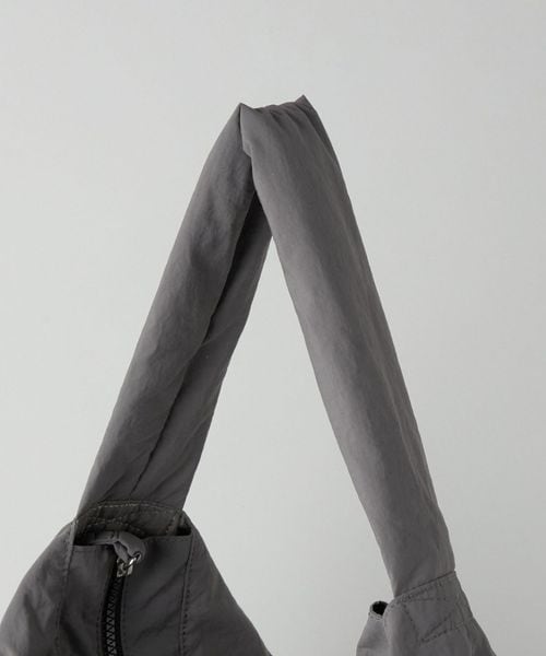 シャーリングを寄せてトレンド感あるコンパクトなサイズにもなり、お荷物が多い時はシャーリングはよせずにシンプルな縦型ショルダーバッグとしても使える汎用性高いアイテムです。